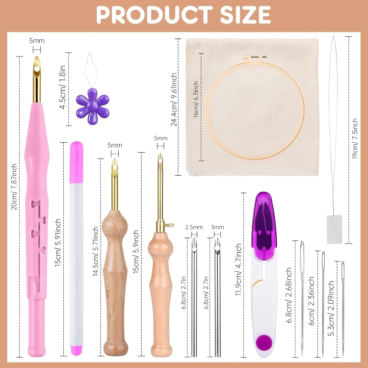 - 【Package Includes】1 piece embroidery hoop,1piece plastic handle yarn punch needle, 2 pieces wooden handle embroidery needle, 2 pieces natural punch needle cloth (9.45inch x9.45 inch),1 piece yarn scissors, 1pcs mark pen, 9pcs big eye needles, 2 pieces threaders and 2 pieces long wire thread. A special and intentional gift will bring more happiness to people! Even if the price of these gifts is not that expensive, the intention of the gift maker is priceless.